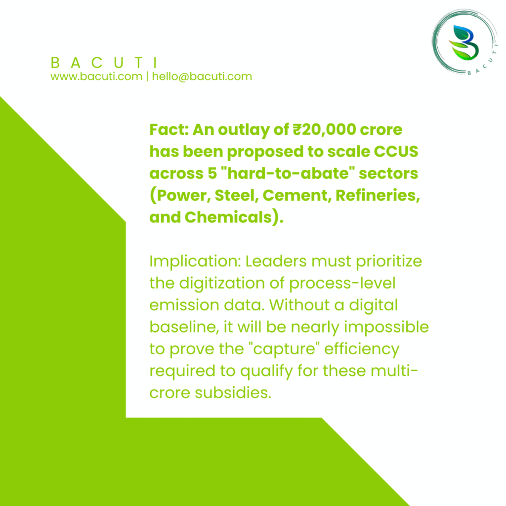 Leaders must prioritize the digitization of process-level emission data. Without a digital baseline, it will be nearly impossible to prove the “capture” efficiency required to qualify for these multi-crore subsidies.