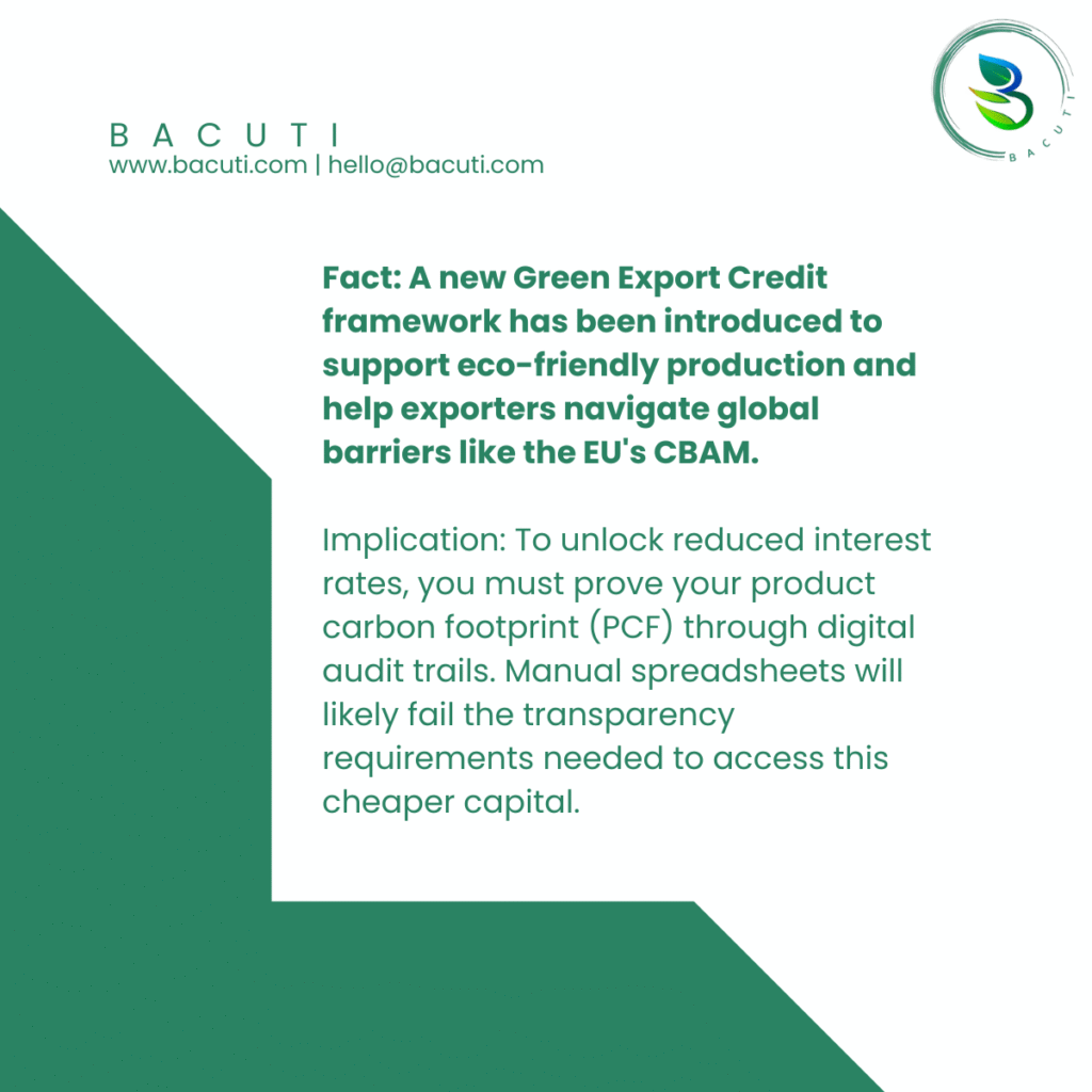 Fact: A new Green Export Credit framework has been introduced to support eco-friendly production and help exporters navigate global barriers like the EU’s CBAM.