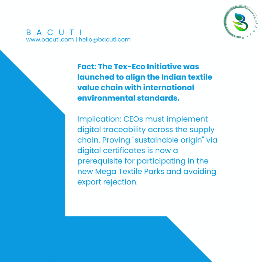 CEOs must implement digital traceability across the supply chain. Proving “sustainable origin” via digital certificates is now a prerequisite for participating in the new Mega Textile Parks and avoiding export rejection.